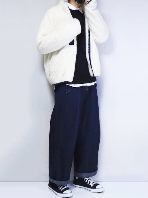 可愛い白ブルゾンを使用したもこもこコーディネートです。