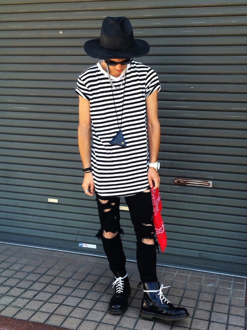 ライダースのインナーにもボーダーは大活躍ですね!男らしいライダーススタイルは無地じゃなくボーダーでオシャレをプラス!