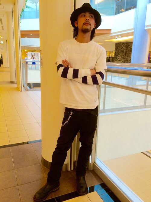 こちらもボーダーの方を出したレイヤードスタイルです!胸ポケットにもボーダーを取りいれて合わせています!