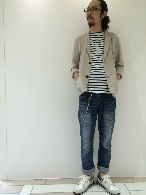 ジャケットのインナーにもボーダーは使えます!春はこんな形でのインナー使いがとてもオシャレです!