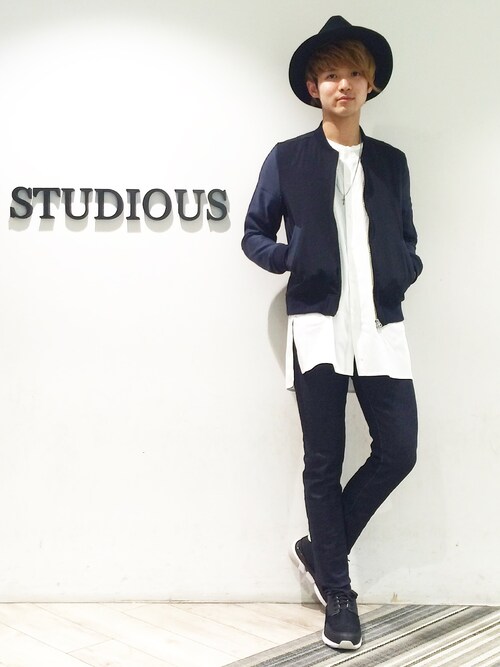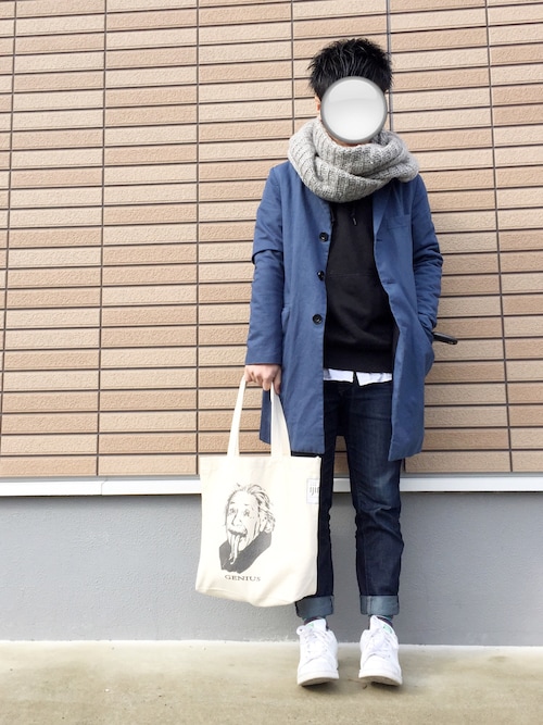 濃い目の色合いから袖と裾だしで綺麗に白が出ているのでかたすぎずちょっとした遊び心を感じるコーディネートです!