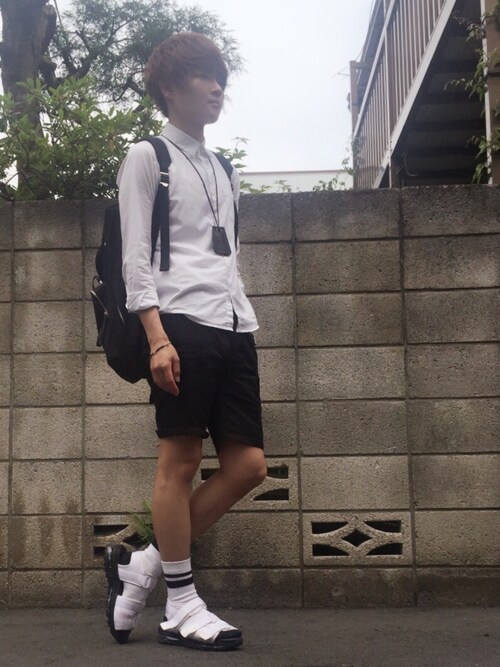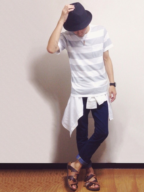 夏はどうしても暑いのでそのまま裸足でサンダルを履いてしまう所ですが、しっかりとトップスと色を合わせる白ソックスを履いて合わせてます!ソックスサンダルは敬遠する人も多いですが、こうして見ると実際オシャレだと思いませんか?
