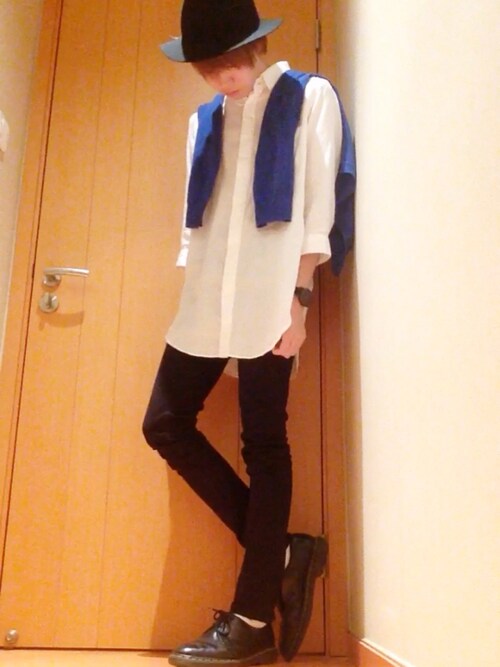 爽やかな薄いブルーと白シャツのコーデですね!足元にはドレスシューズをもってきておりデニムのカジュアルと調和しています!