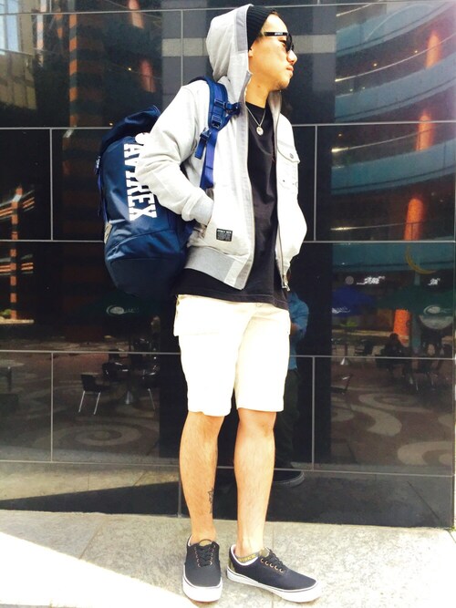 ザ・カジュアルスタイルですね!しかしやっぱりただ着るだけじゃないですね!カーキのシャツをパーカーからチラ見させています!