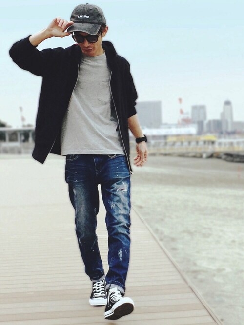 とても素敵なアメカジコーデですね!少し大きめのパーカーに薄いデニムが綺麗に合っていますね!