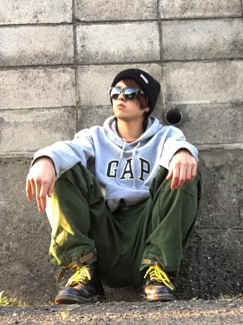 トップスのパーカーはGAPのロゴが入っていますが、こちらは無地でもOKです!少し大きめのオーバーサイズをブカッと履いたスタイルです!