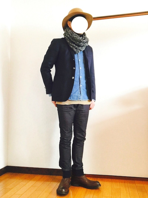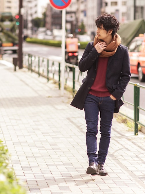 チェスターコートとの相性バッチリのスヌードは巻くだけで男をあげますね!