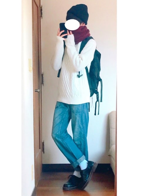 可愛らしいコーデですね!冬なのに明るくて可愛い系男子の人には是非やって欲しいです!コートがないと寒い時期はこれに一枚羽織ってもいいですよね!