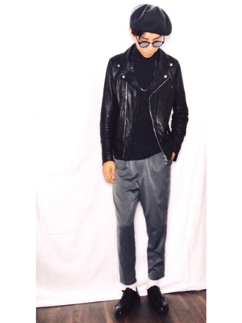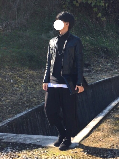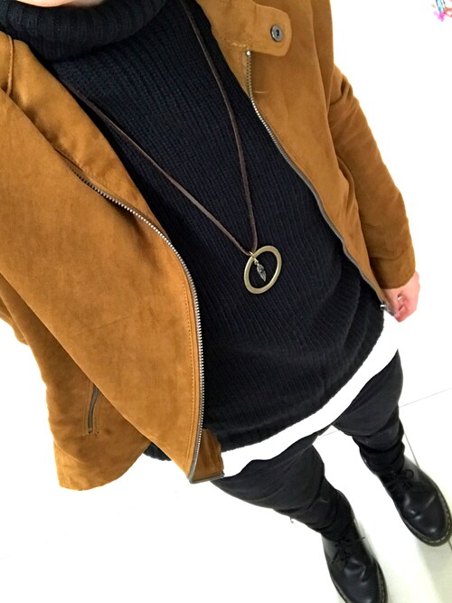ライダースジャケットとの合わせも文句なしです!黒のライダースに黒のタートルネックでとってもカッコイイですね!