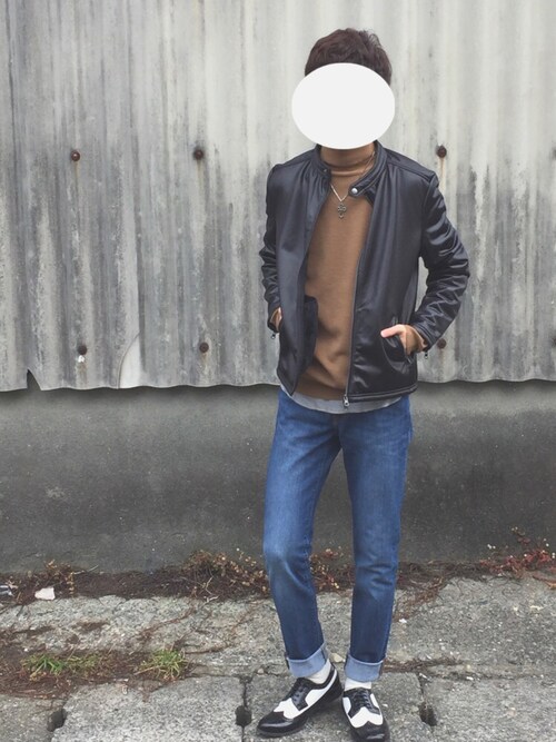 茶色のタートルネックと黒のライダースとのコラボです!文句ない感じですよね!ビシッと決まって色合いも素敵です!黒のライダースと合わせたい人はインナーの色悩んじゃいますね!