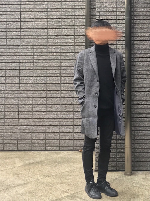 薄いグレータートルネックにチェスターコートがマッチしてます!やっぱりチェスターコートとの相性が一番なんですかね?横から見ても文句ないシルエットですね!