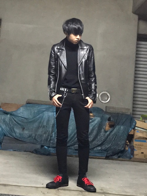 大人の悪コーデですね!ライダースがバッチリ決まってます!冬はやはり寒いので首元を隠せるタートルネックは必須ではないでしょうか!黒のライダースに黒のタートルネックがバッチリと決まりますね!