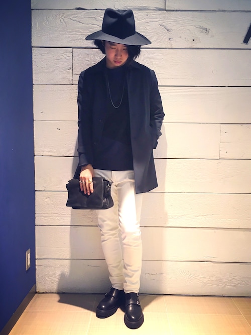普段黒でまとめてる方へおススメなのがやはり白パンツでの遊びをいれることですね!大人の余裕を感じるコーディネートです!