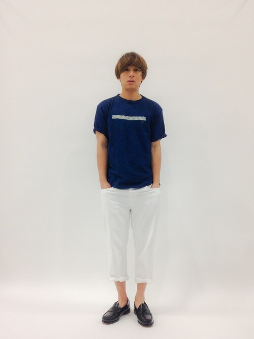 爽やかさを増したいならブルーデニムジャケットと合わせてみてはどうでしょうか?爽やか×爽やかスタイルです!足元にアクセントのある靴をもってくるのもオシャレポイント!