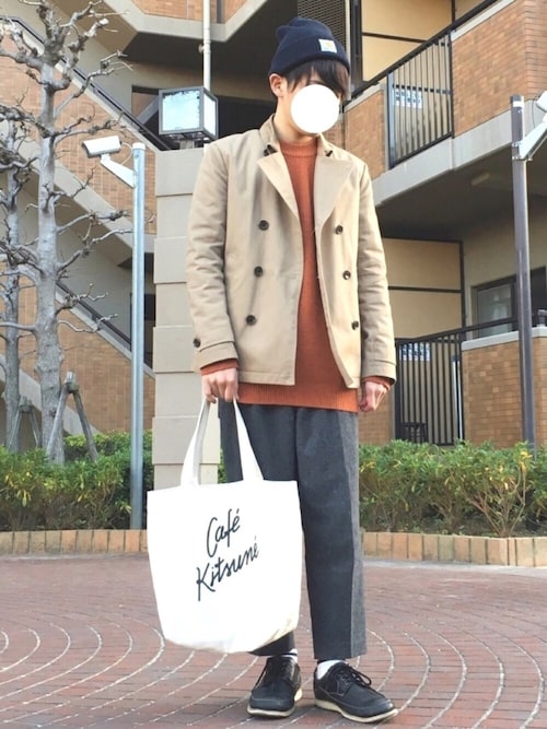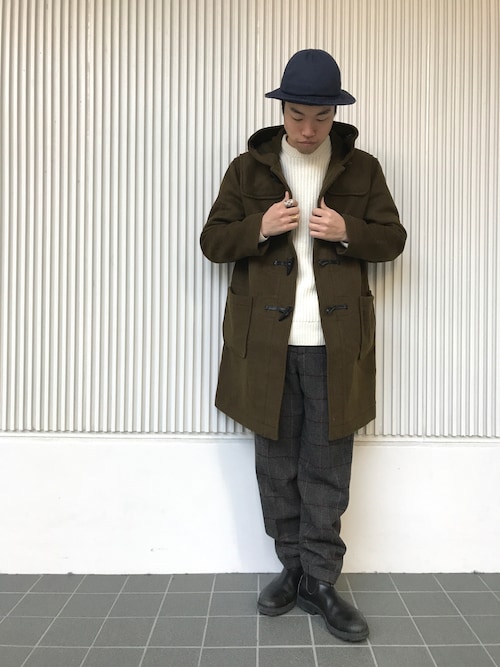少し太めなパンツですが、足元の革靴と合わせる事でカジュアル過ぎないスタイルになっています。ダッフルコートもロングダッフルを選ぶことで子供すぎない大人コーディネートとなっています。