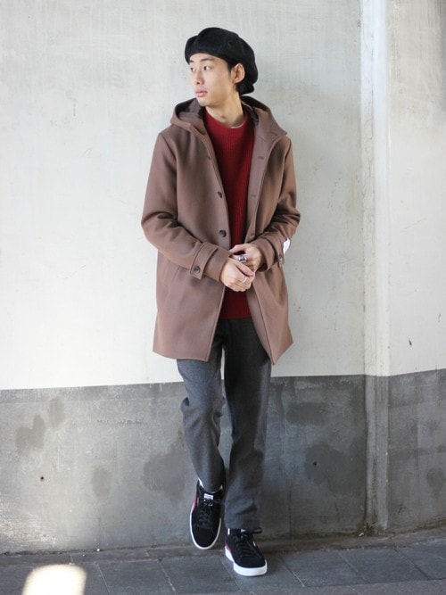 ダッフルとは違うフーデッドコートは新定番になれるのか!とても落ち着いた色合いのコーデです。ウールパンツは革靴、スニーカーと両方合いますのでどっちにしようか迷ってしまいますよね。