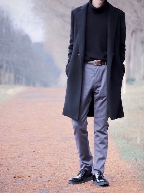 インナーにはチェスターコートにも相性バッチリのタートルネック!こんな姿でデートに来たら彼女さん大喜びですね!