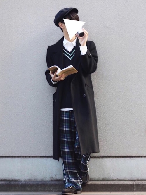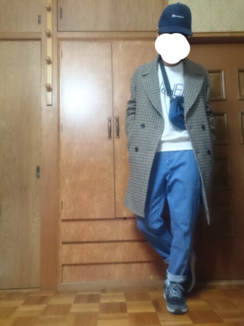 ダブルチェスターコートがとっても綺麗めなので他全てがカジュアルでも釣り合いがとれますね!