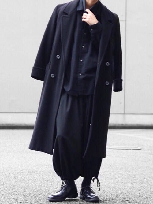 ブラック(黒)ダブルチェスターコート着こなし