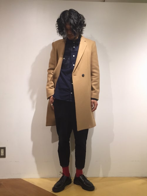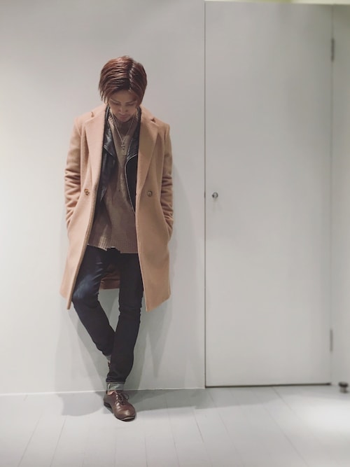 キャメルダブルチェスターコート着こなし