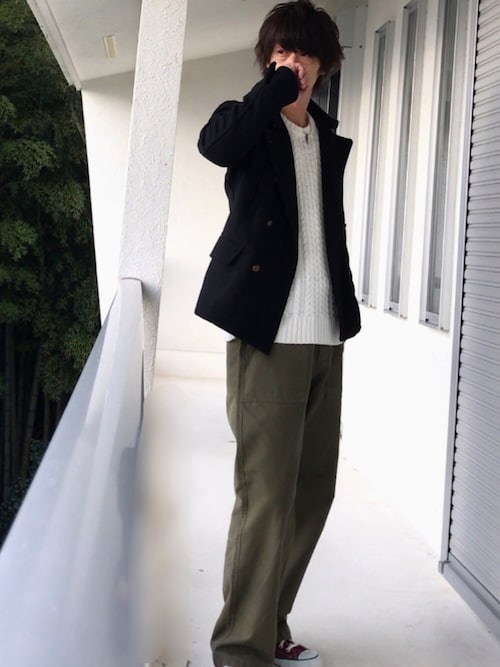こちらも下半身にゆったりめのパンツを選ぶ事で綺麗なシルエットを見せています!ゆったりパンツは流行っていますしこの時期とても着やすいですね!価格も安いので是非1本購入してみてはどうでしょうか?
